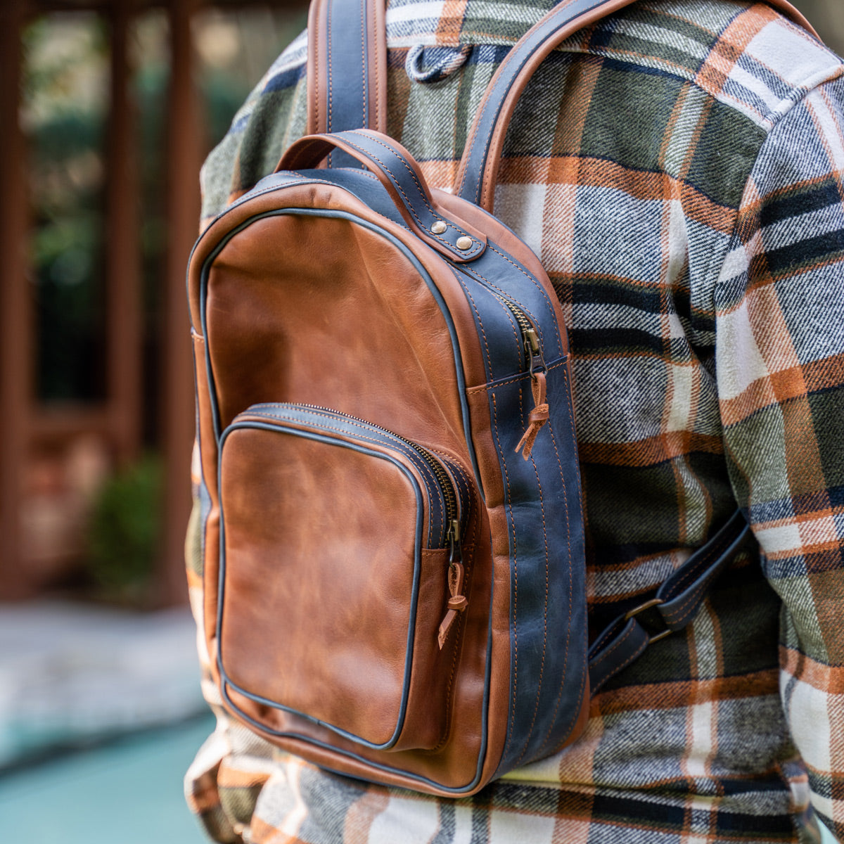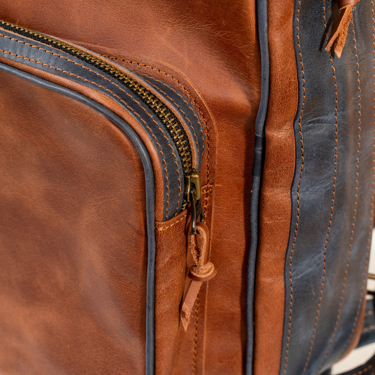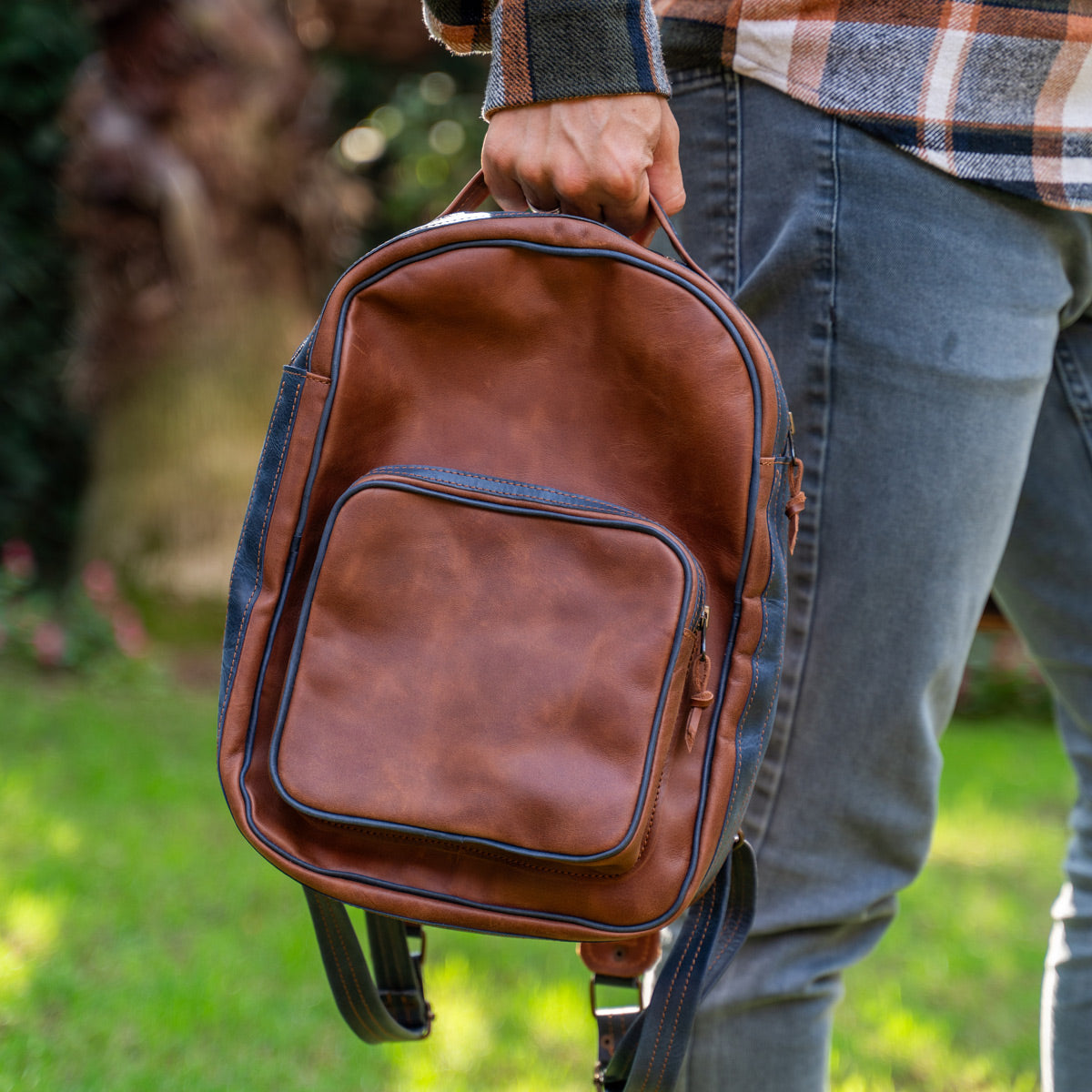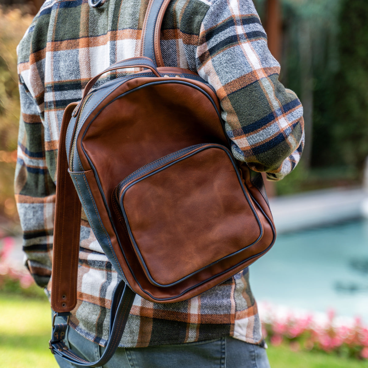 Çift Renkli Deri Sırt Çantası,%100 El Yapımı, Deri Erkek Sırt Çantası