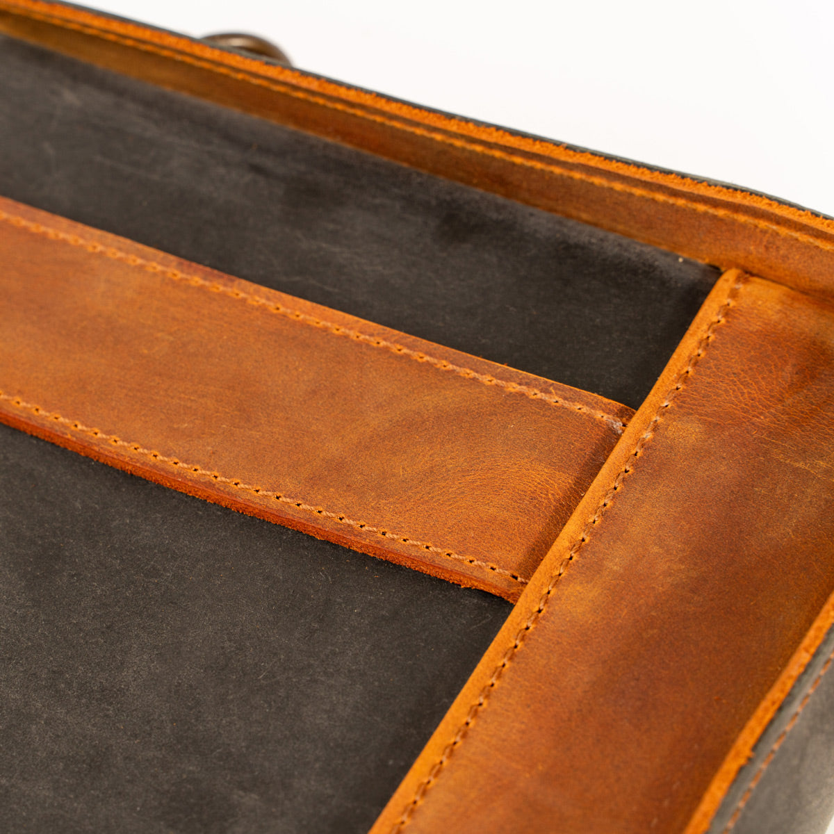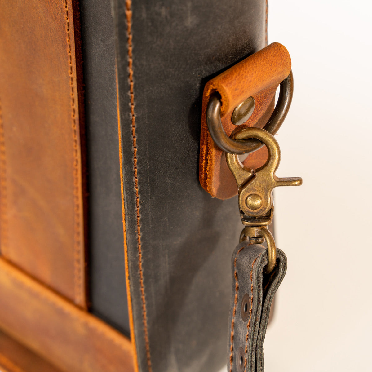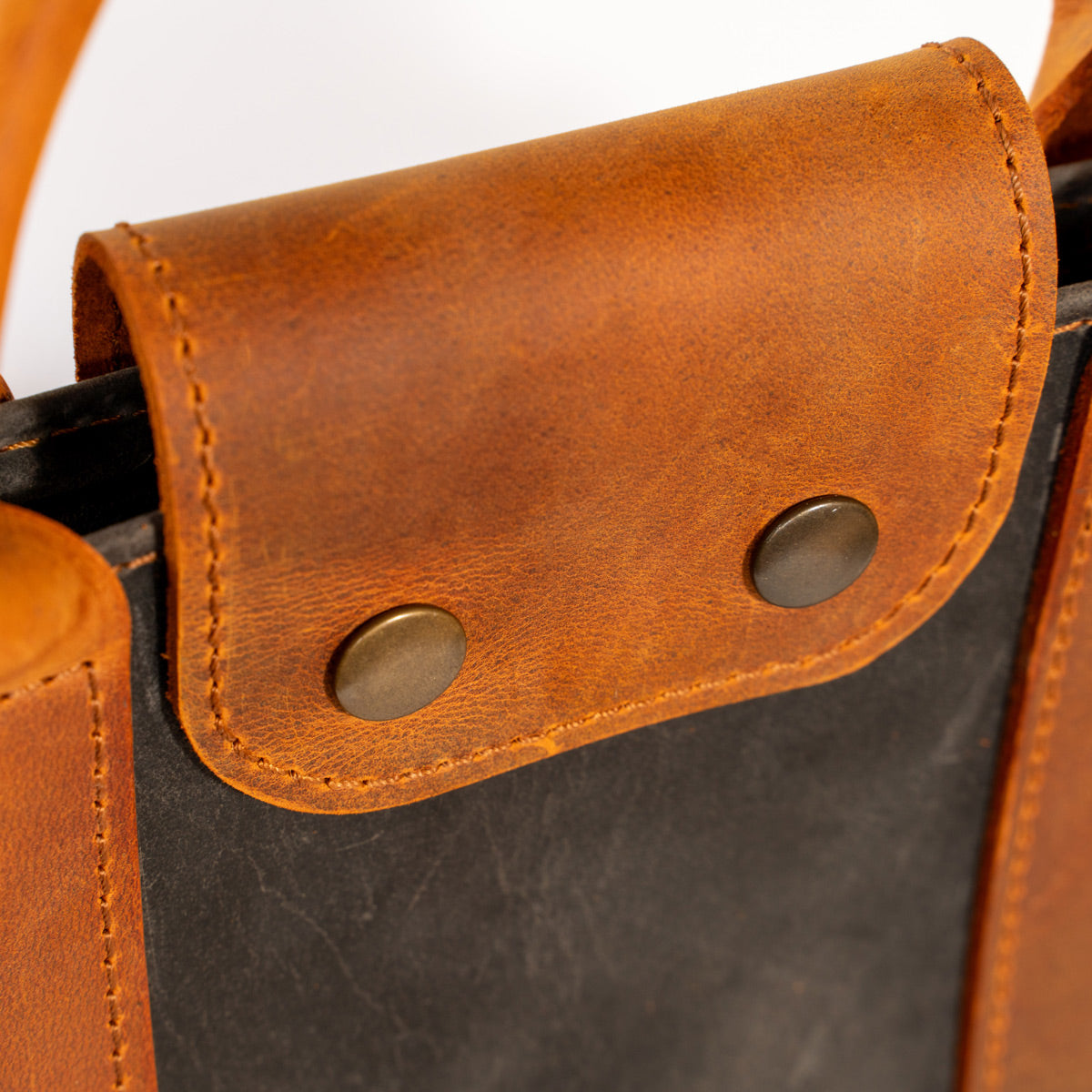 Gerçek dana derisinden üretilen bu modelde crazy derinin doğal dokusu ön plana çıkar. Zamanla karakter kazanan yüzey, hafif çizilmeye açıktır ancak deri bakım kremiyle kolayca toparlanabilir. Bronz aksesuarlar ve çıtçıtlı kapanış ise çantanın hem dayanıklılığını hem de estetik duruşunu güçlendirir.