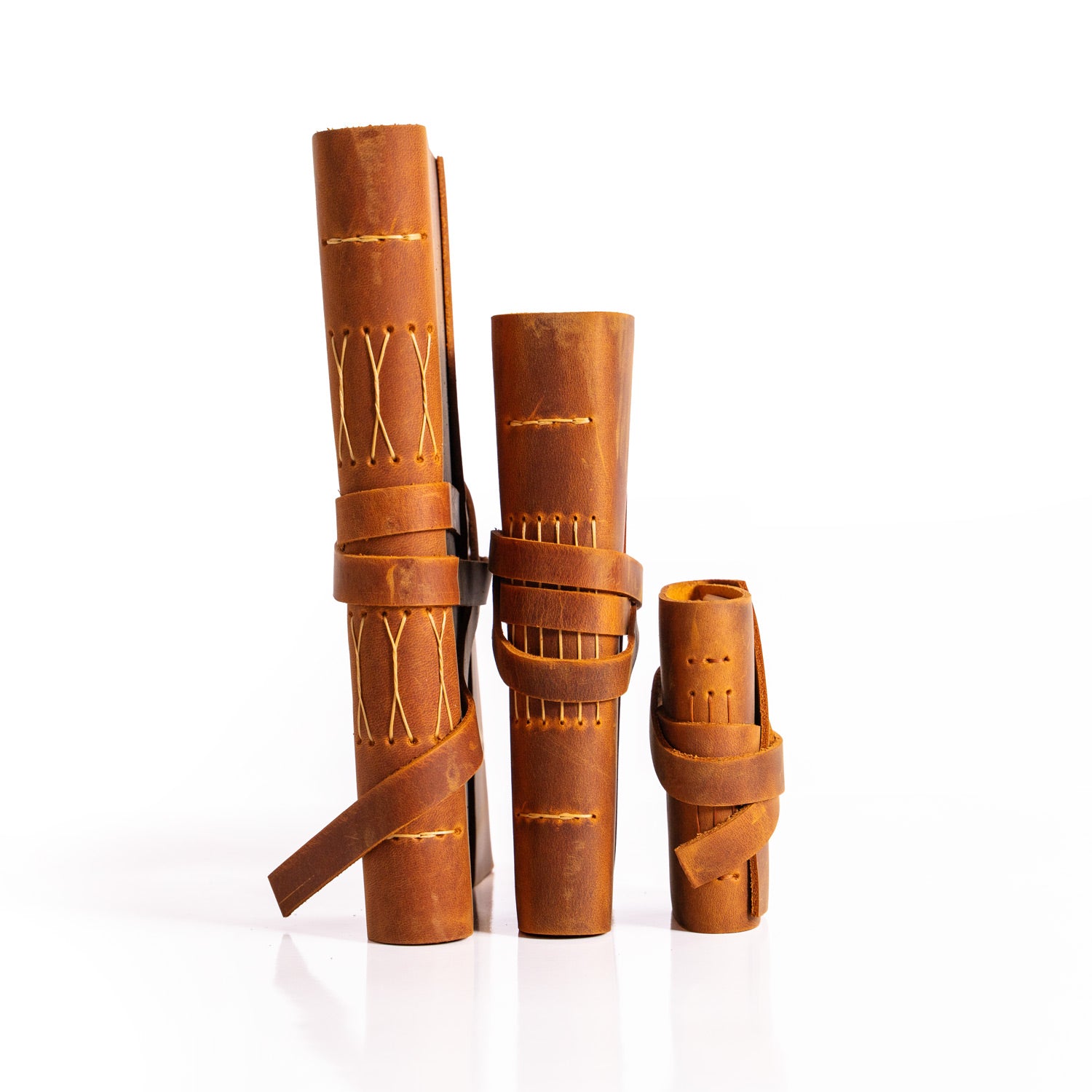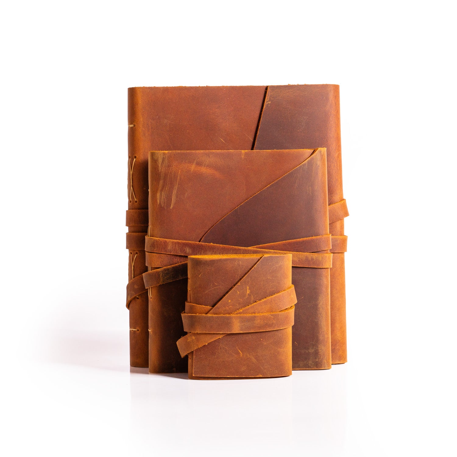 Düşüncelerinizi, hayallerinizi ve anılarınızı bu özel el yapımı kahverengi deri defter setiyle ölümsüzleştirin. Her boyut, hayatınızın farklı bir yönünü kaydetmek için tasarlandı.