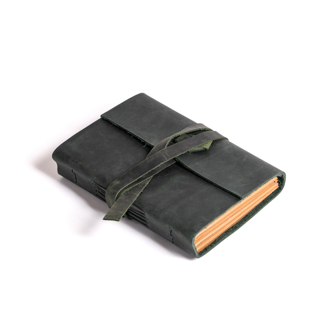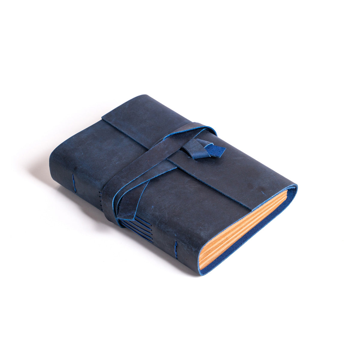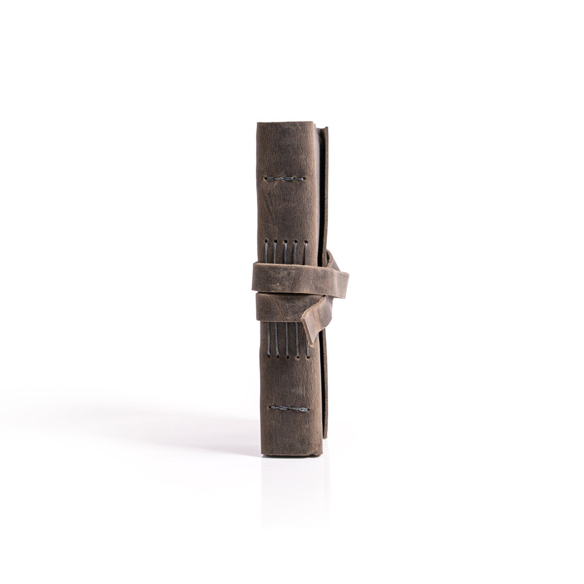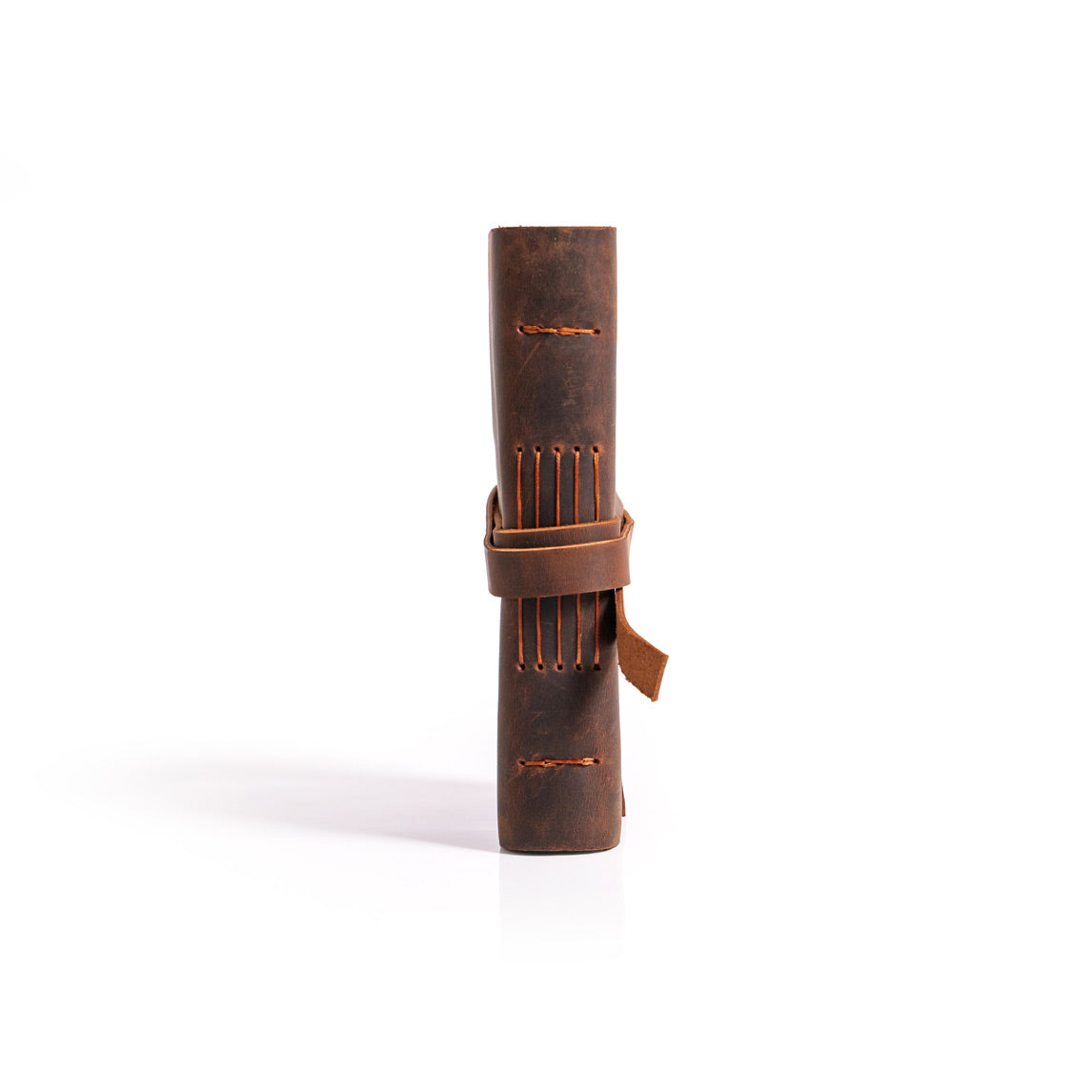 •El yapımı deri defterin sayfaları, dayanıklı mumlu iplikte uzun dikiş bağlama yöntemi kullanılarak deri kapağa elle tutturuldu.
