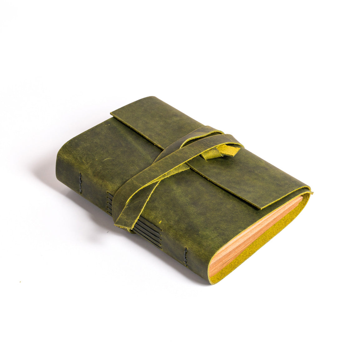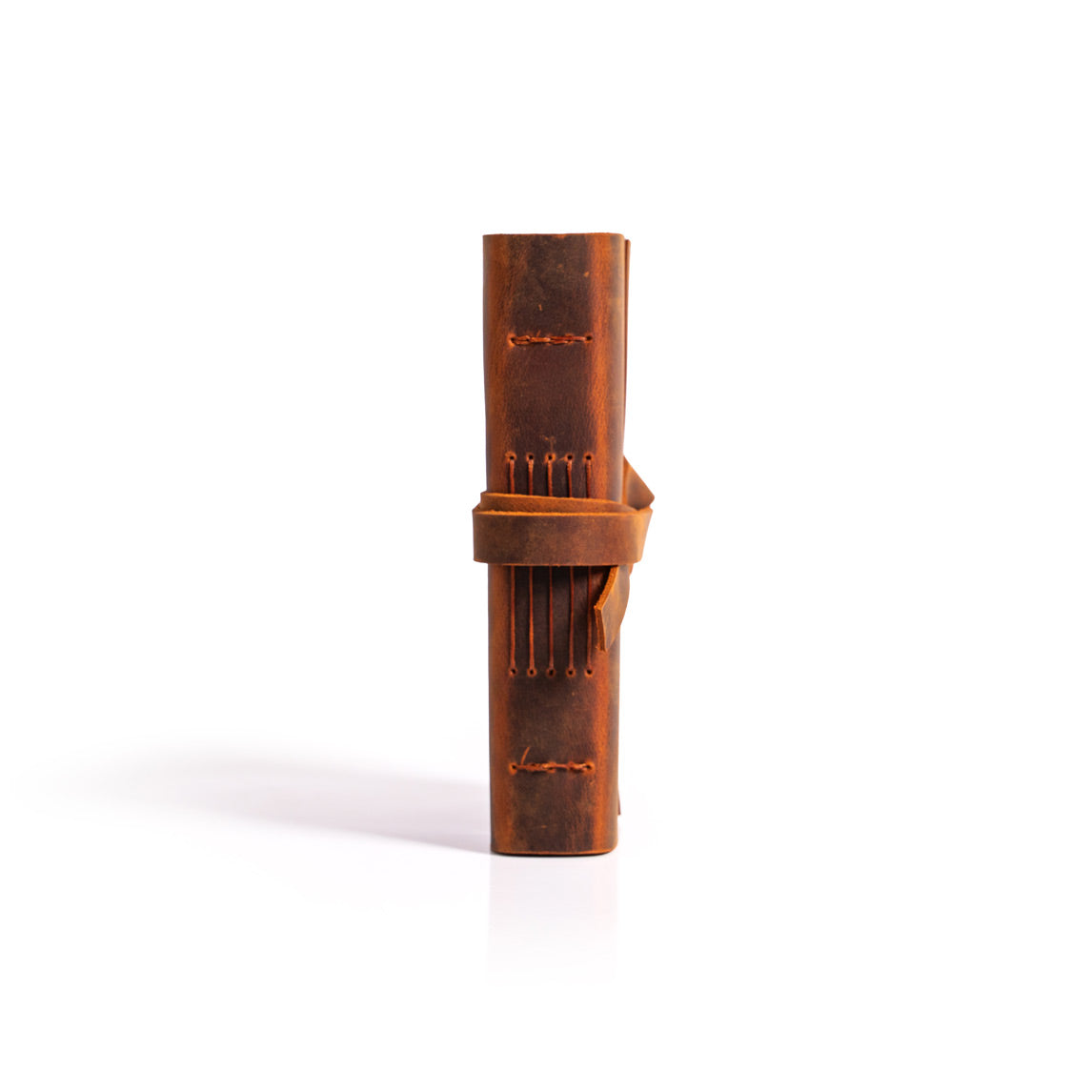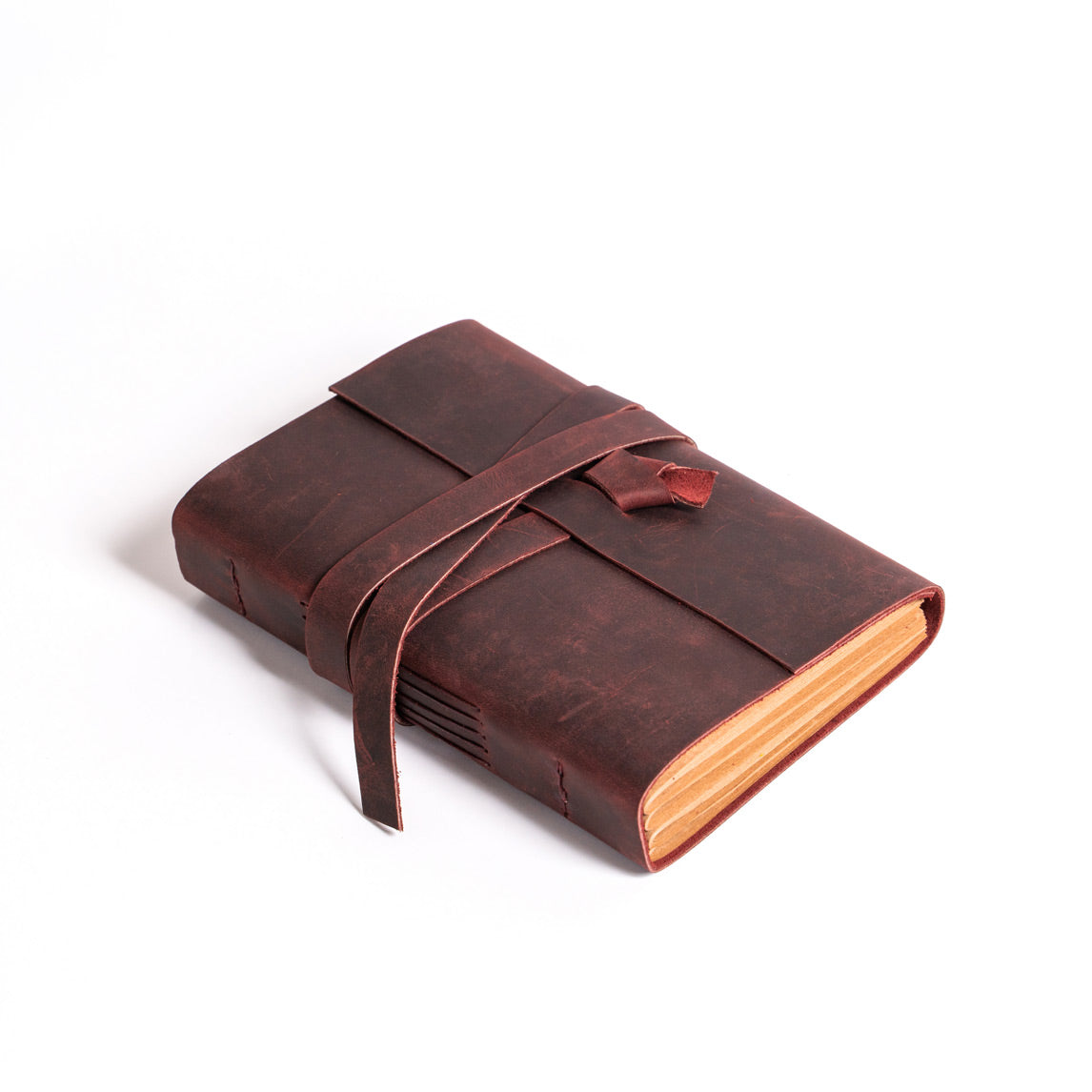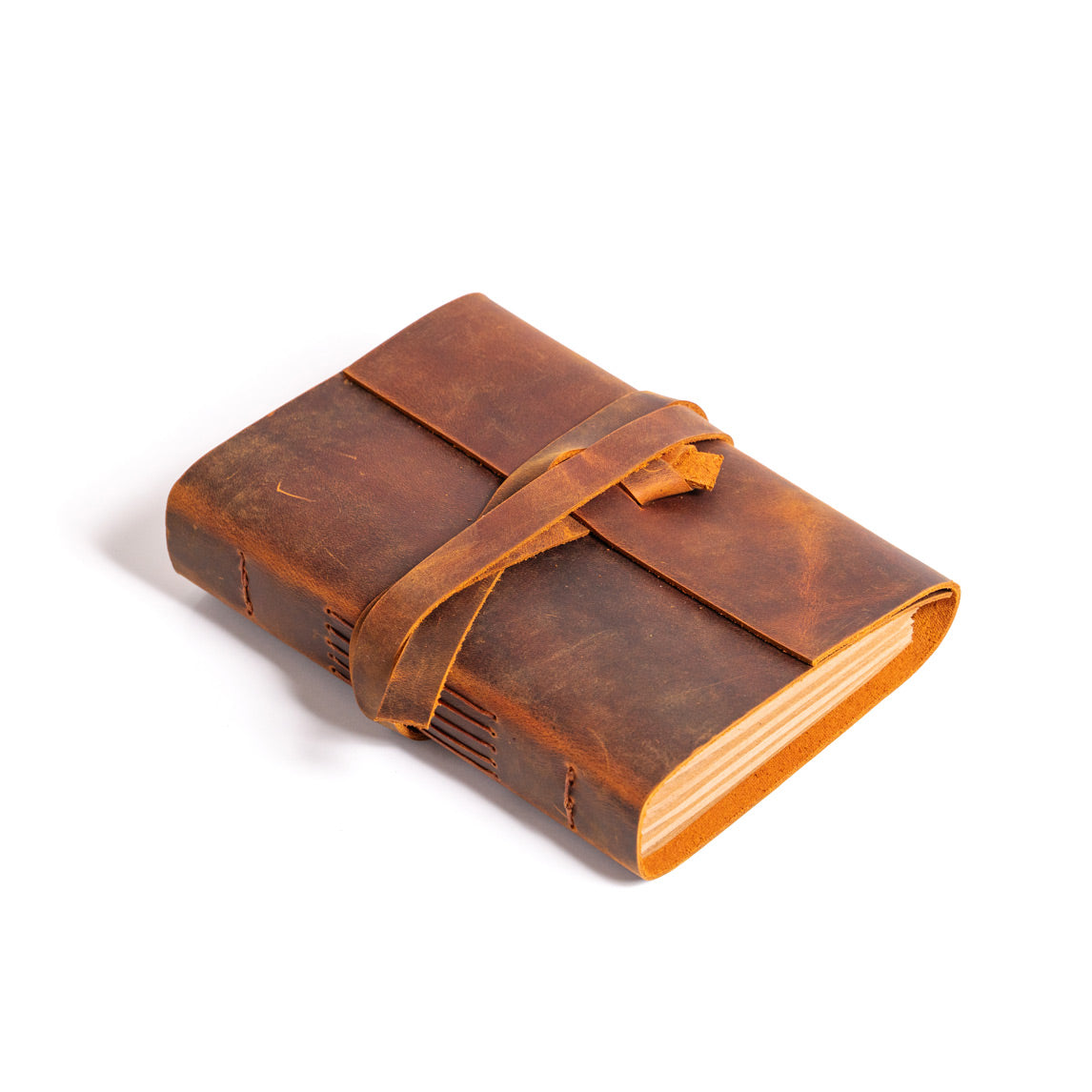 •El yapımı deri defterin sayfaları, dayanıklı mumlu iplikte uzun dikiş bağlama yöntemi kullanılarak deri kapağa elle tutturuldu.