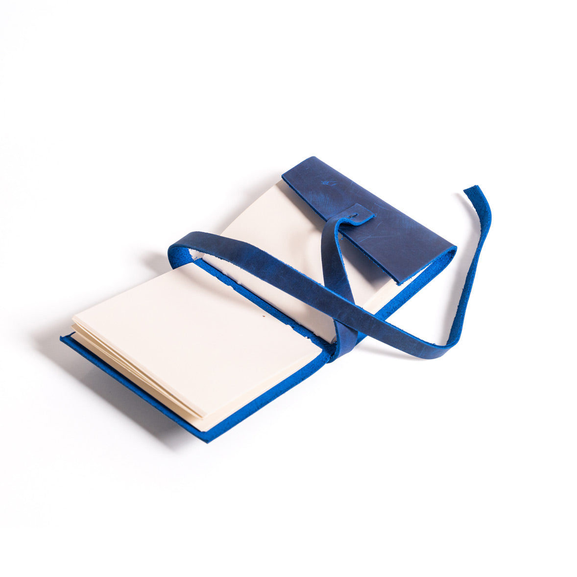 Mini Cep Deri Defter - Mavi, Yumuşak Kapaklı [ 8 cm x 8.5 cm ]