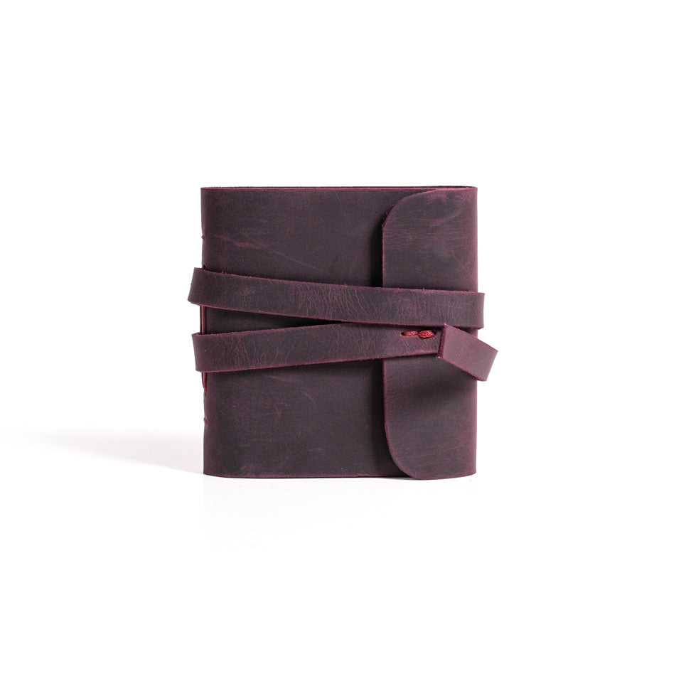 Handmade Mini Leather Wraparound Journal Claret Red Color [3" x 3"]