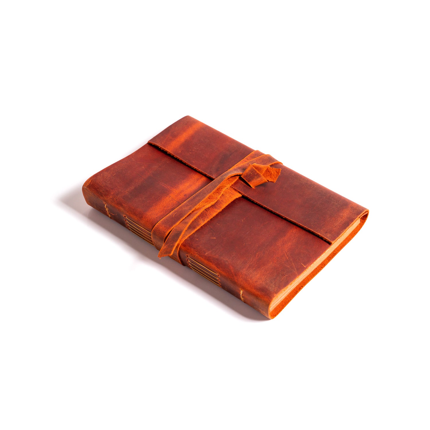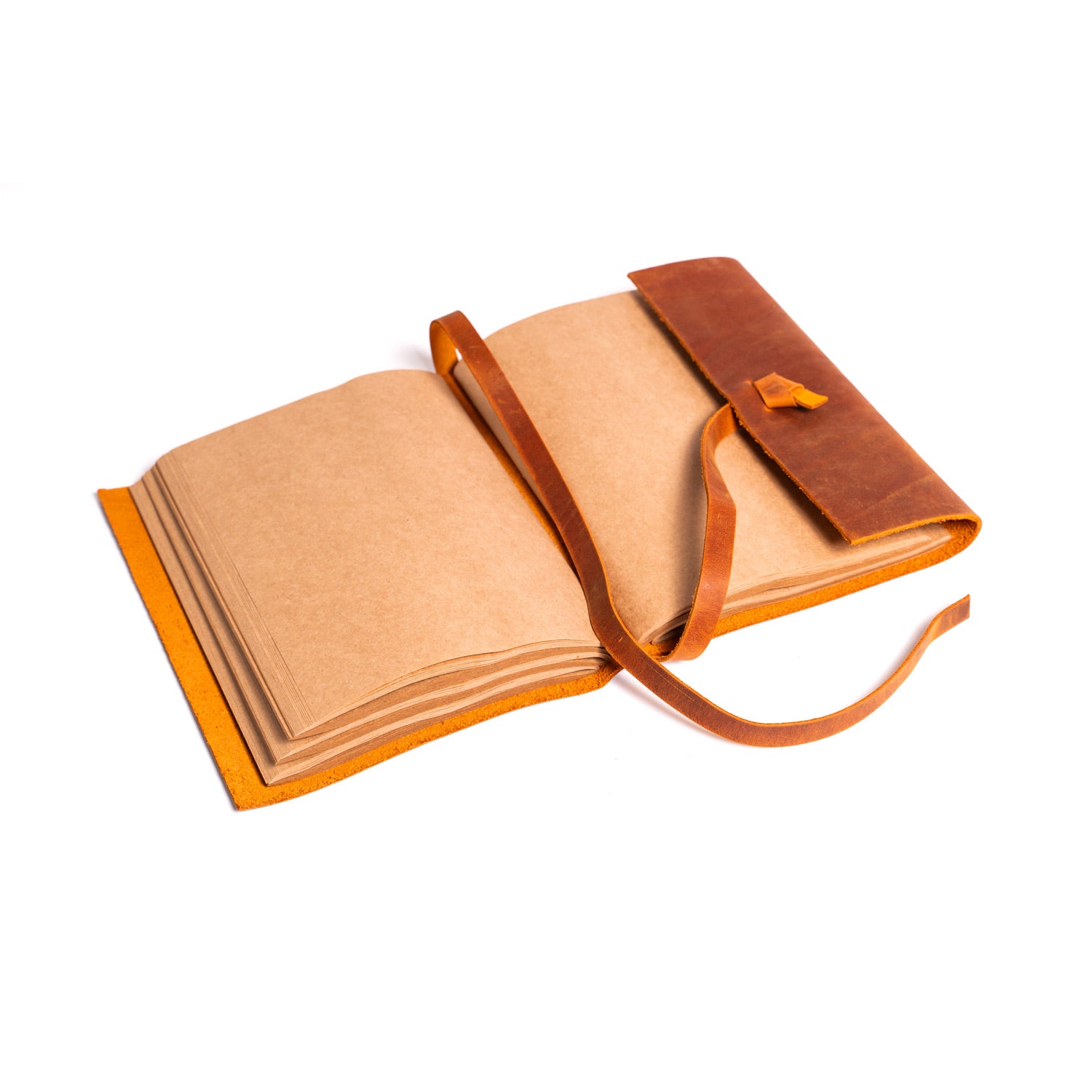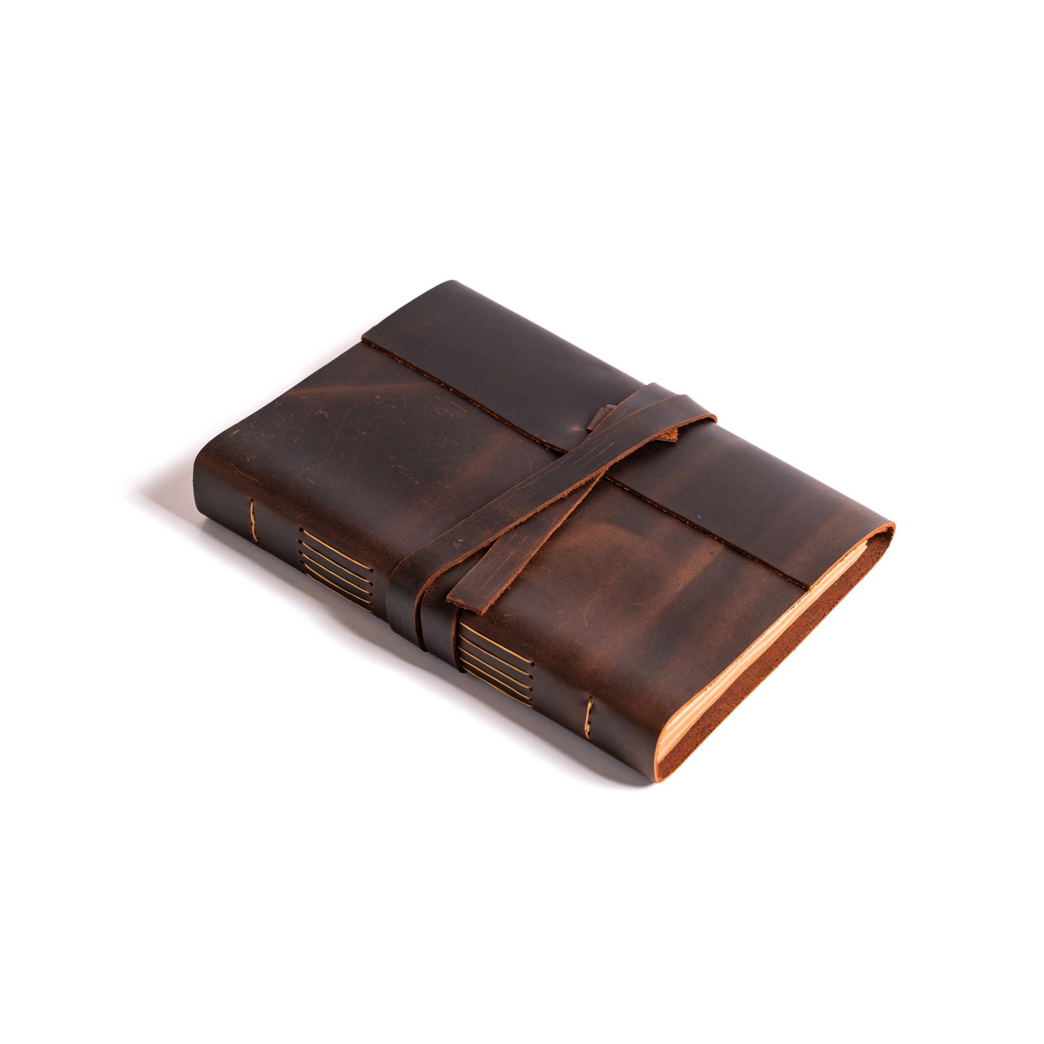 • The pages of the handmade leather notebook were handled by hand on the leather cover using long sewing connection method on the durable waxed yarn.