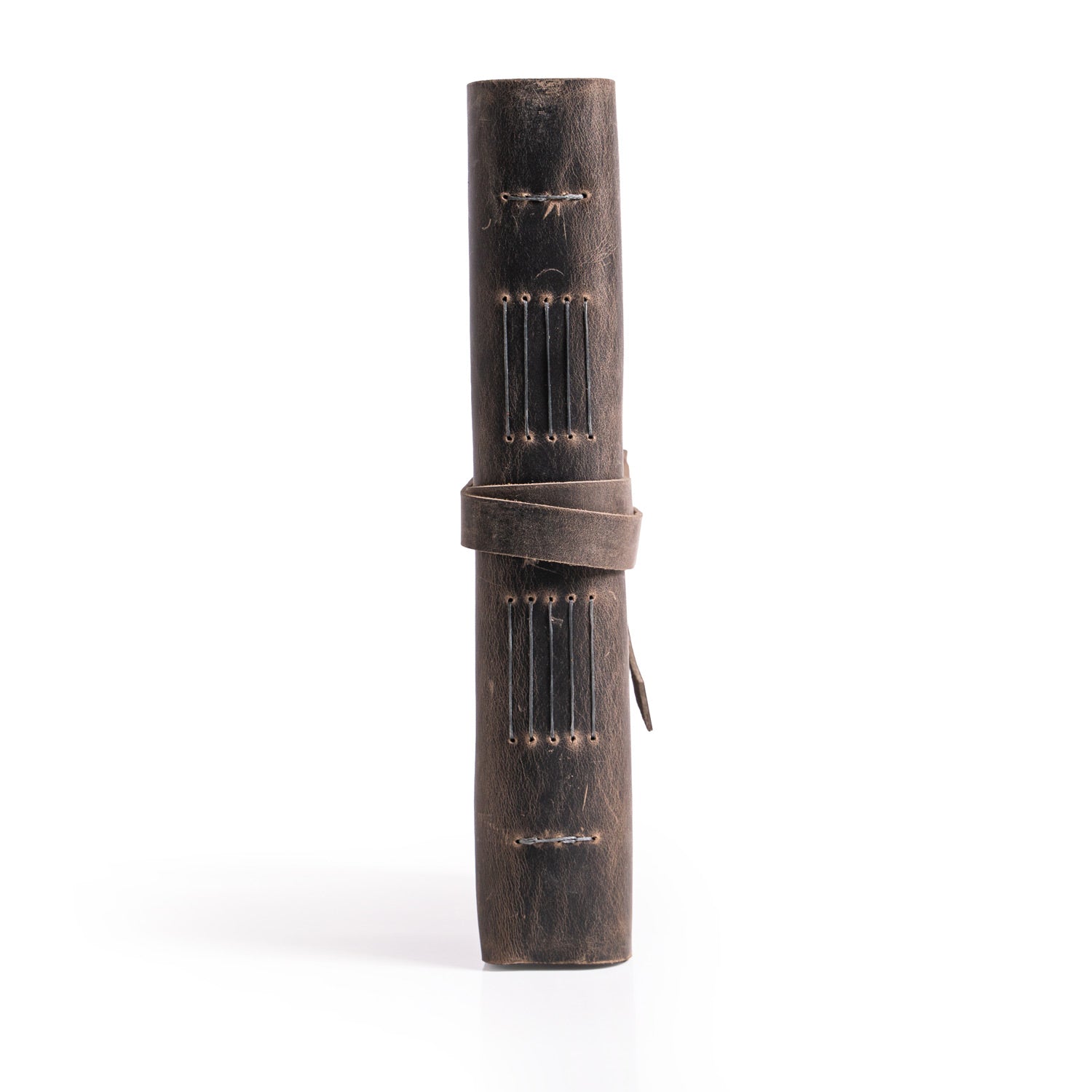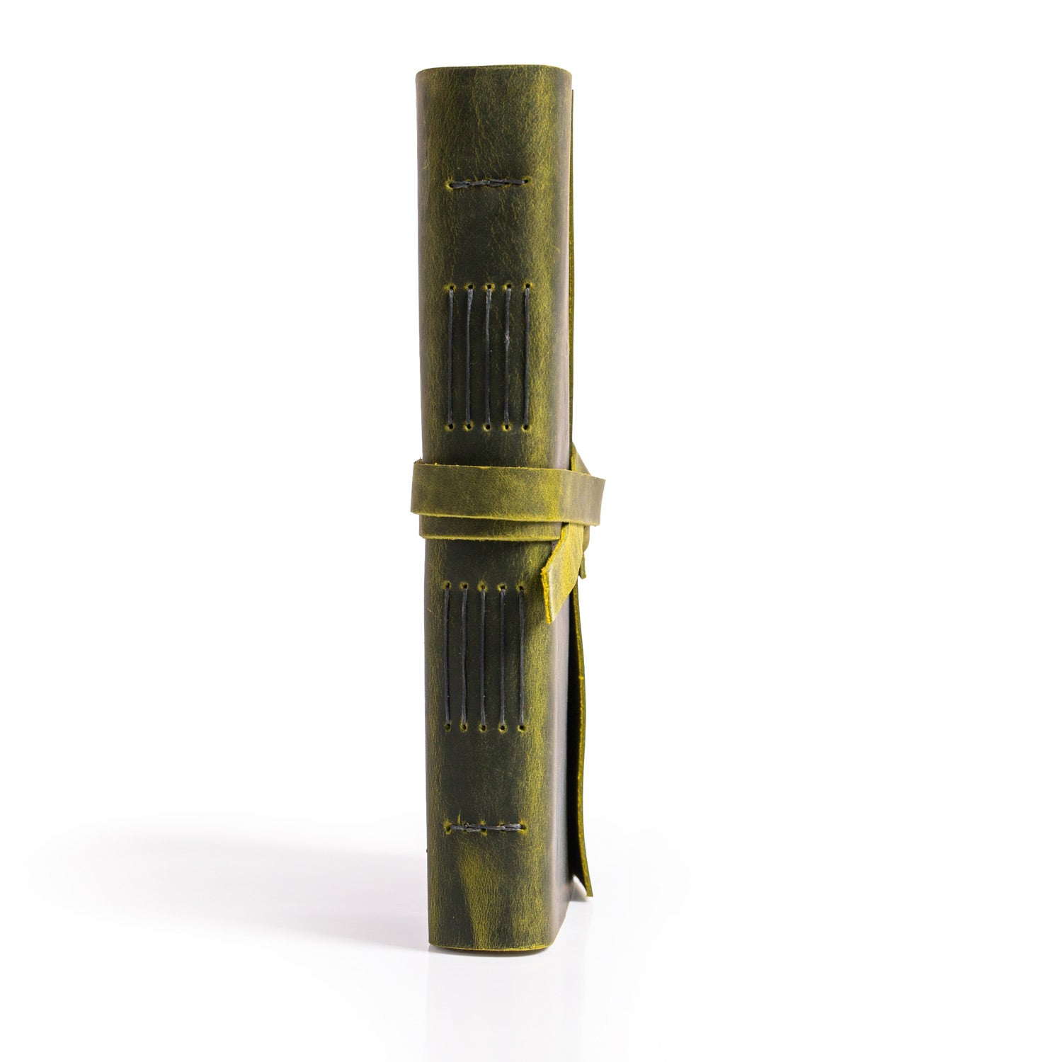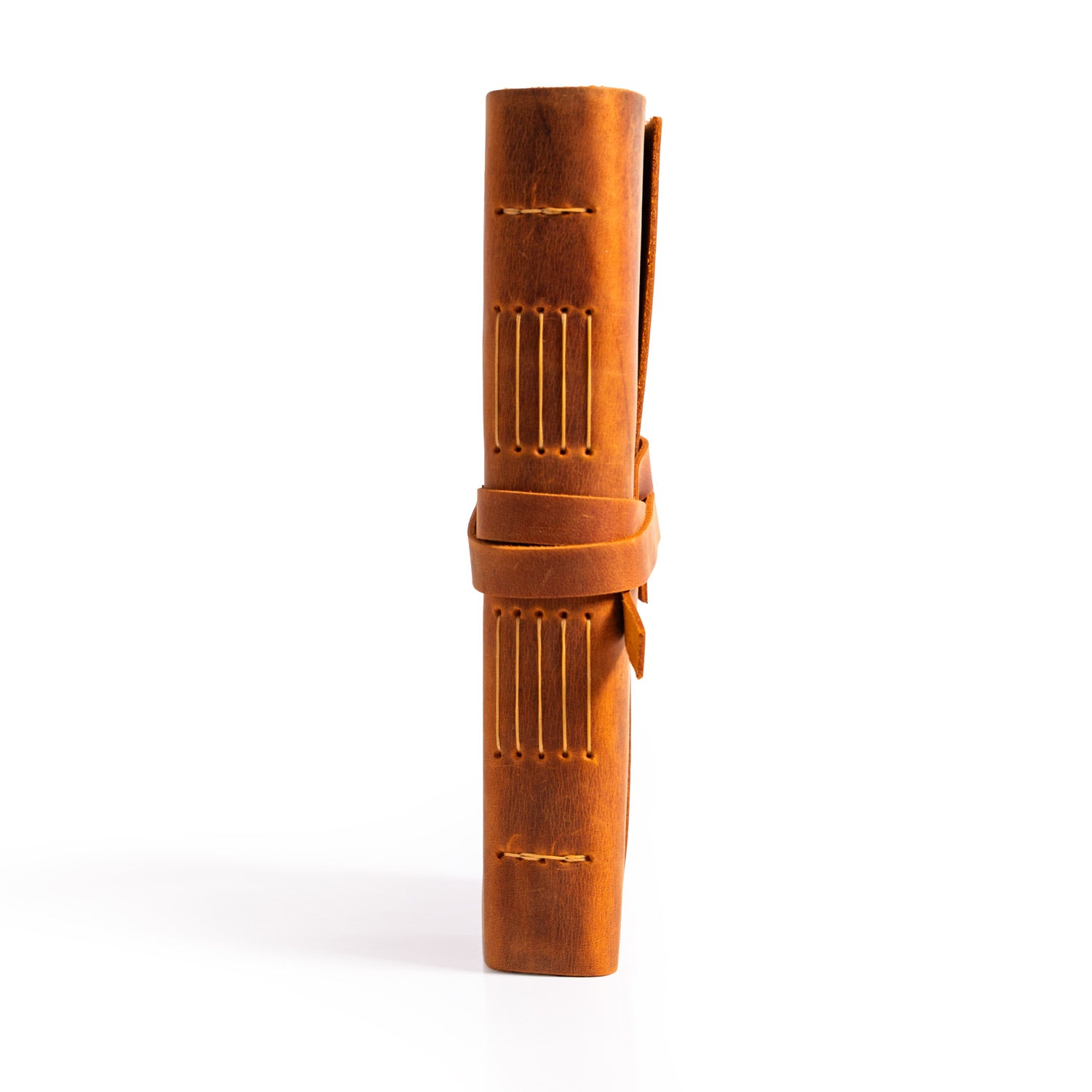 • The pages of the handmade leather notebook were handled by hand on the leather cover using long sewing connection method on the durable waxed yarn.