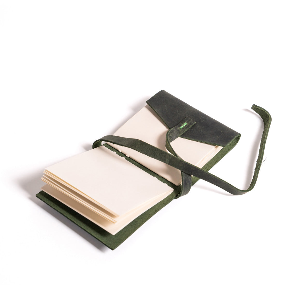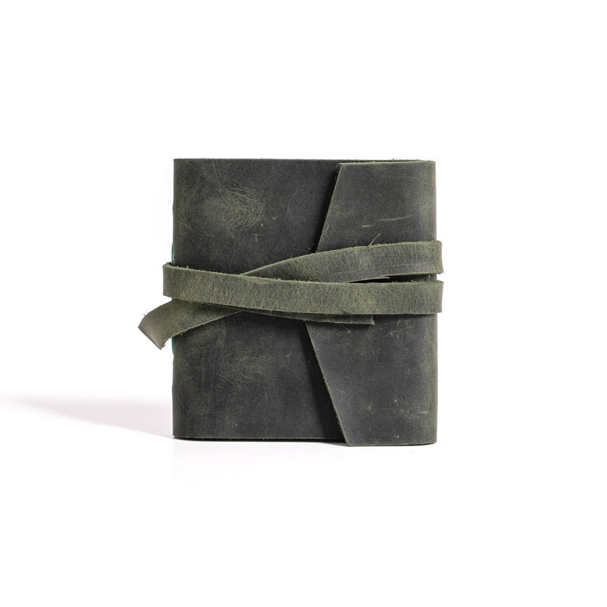 Mini Cep Deri Defter - Yeşil, Yumuşak Kapaklı [ 8 cm x 8.5 cm ]