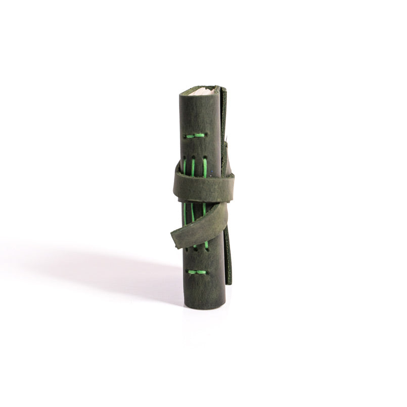 •El yapımı deri defterin sayfaları, dayanıklı mumlu iplikte uzun dikiş bağlama yöntemi kullanılarak deri kapağa elle tutturuldu.